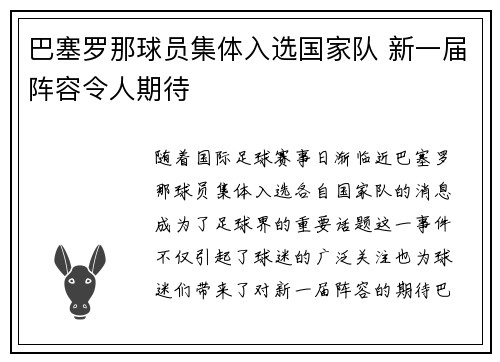 随着国际足球赛事日渐临近,巴塞罗那球员集...