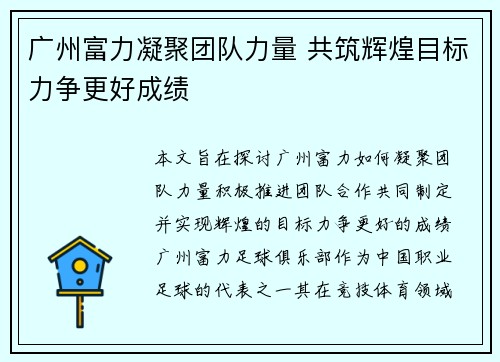 本文旨在探讨广州富力如何凝聚团队力量,积...